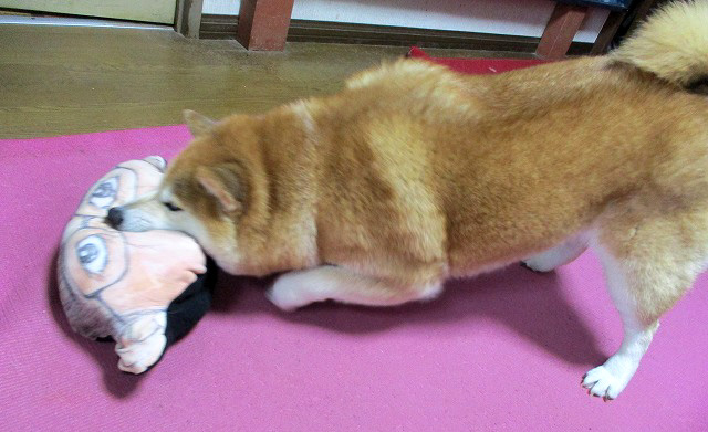 犬 クッション 振り回す